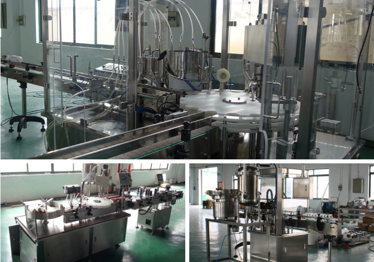 Подача пляшок по столу для годування пляшок --- Автоматична наповнювальна продукція --- Автоматичне сортування та ковпачок для подачі --- Автоматичне закривання кришок --- Автоматичне надання готової продукції --- Автоматичне маркування пляшок